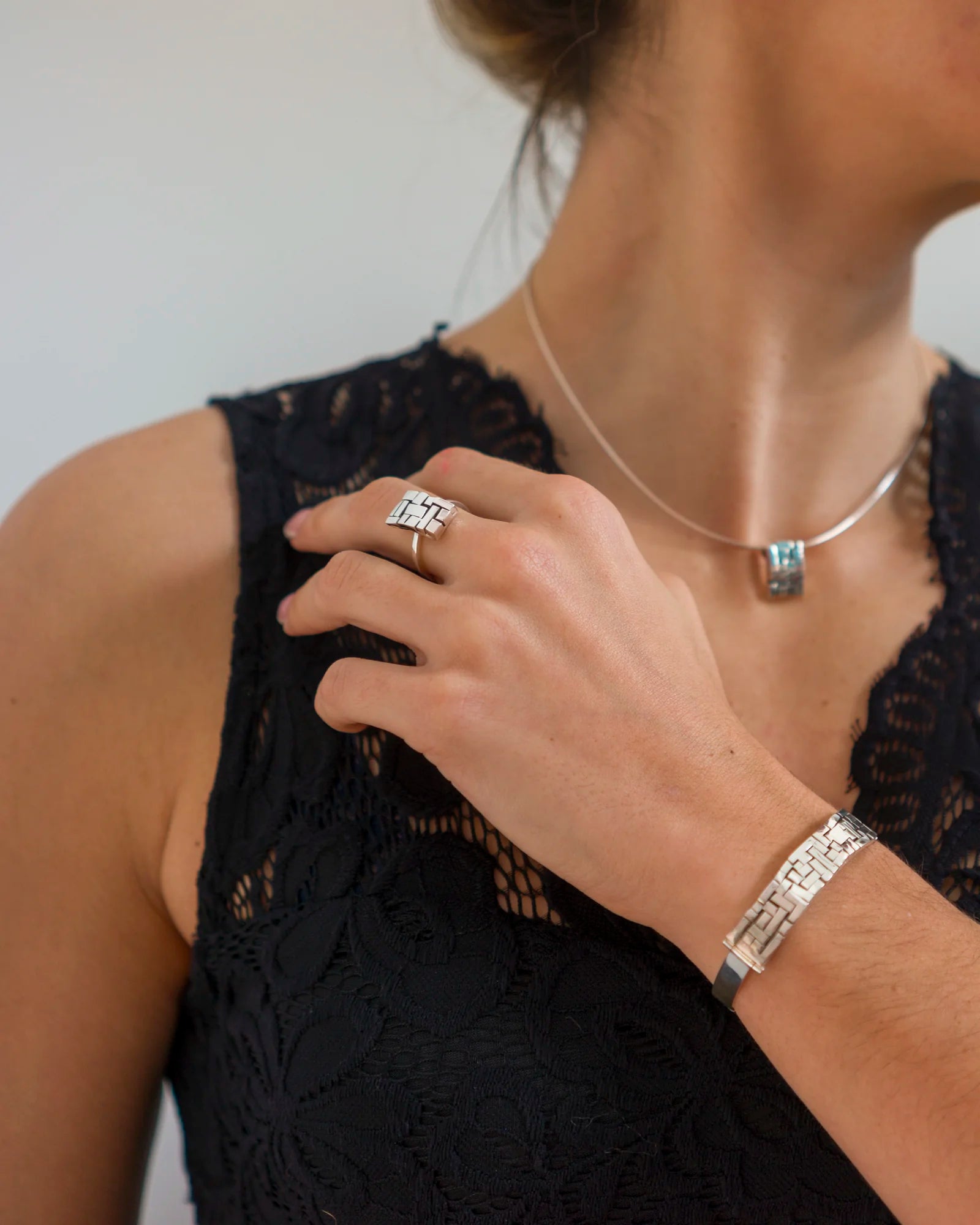 En argent massif 925, les lignes graphiques et géométriques s'inscrivent dans l'esthétique Art déco, symbole de modernité et de raffinement.